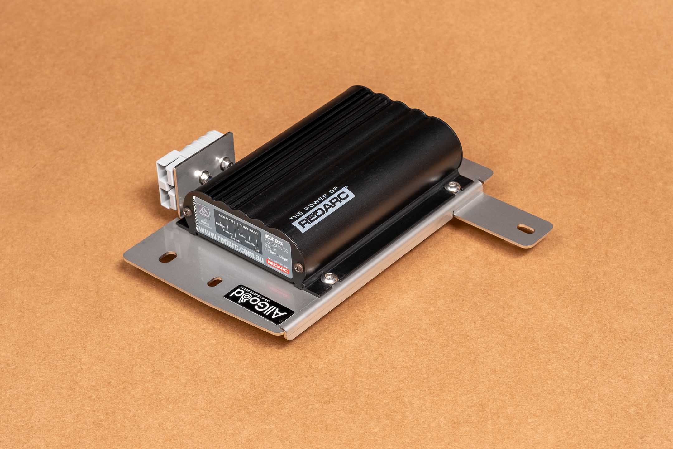 This panel supports the mounting of Redarc's 1220, 1225, 1240 or 1250A BCDC chargers + location for Anderson connector for solar input. It is possible that other makes of DCDC chargers may fit this panel, however, you will need to add your own provisions for fixings.